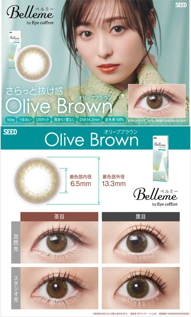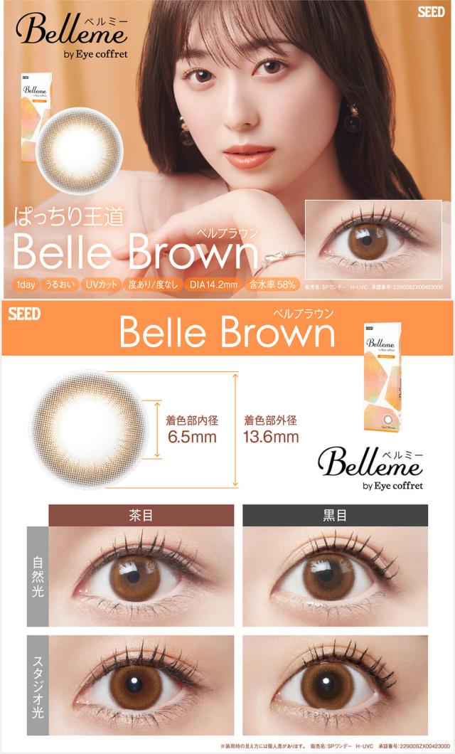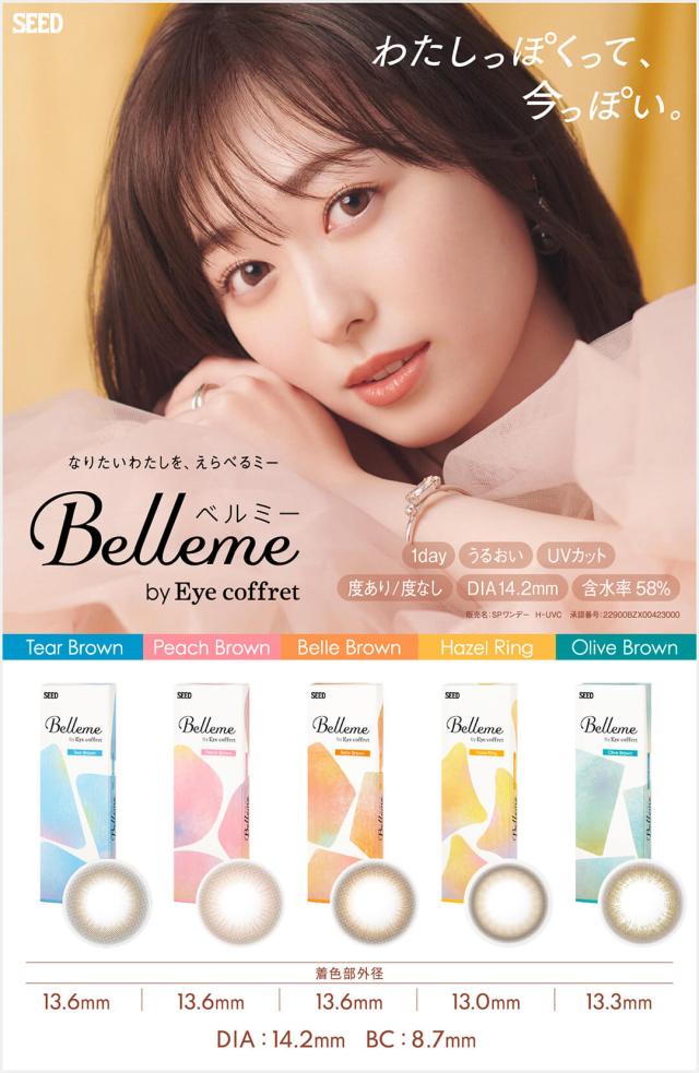 【ゆうパケット発送】 ベルミー by Eye coffret 2箱 (1箱10枚) シード カラコン ワンデー 1日使い捨て UVカット belleme 福原遥 含水率58% 度あり 度なし カラーコンタクト アイコフレ ベルブラウン ティアーブラウン ピーチブラウン ヘーゼルリング オリーブブラウン