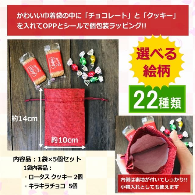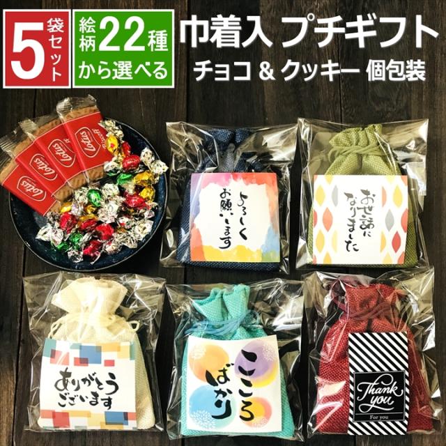 プチギフト お菓子 5袋セット 小分け 選べる絵柄 チョコ クッキー ビスケット 巾着袋 オシャレ 個包装 プチプラ お配り チョコレート チョコ以外 限定 男の子 女の子 男性 女性 メッセージ シール 友チョコ 職場 退職 転勤 お礼 返し 挨拶 大量 卒業 ハロウィン ばらまき 合格