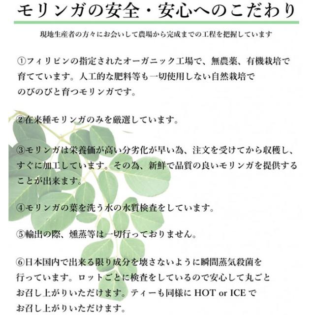 | 原材料名 | 有機モリンガ乾燥葉 |