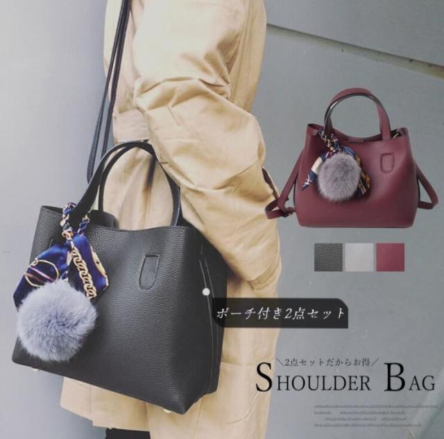 トートバッグ レディース ファーチャーム ショルダーバッグ レザー ポーチ付き 2点セット スカーフ付き 2way バッグ