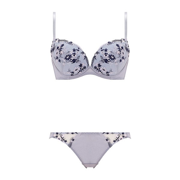 重厚感のある花々のエンブロイダリーレースが、華やかに胸元を演出します。L字パターンで脇からバストを寄せて谷間メイク!エンジェルシェイプパッドは中央に縫い目があるので、バストの丸みに無理なくフィットし自然なバストラインを作ります。ストラップはアジャスター付きなので、長さ調節が可能です。