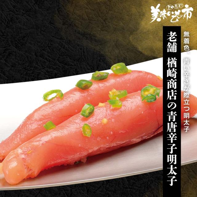 70年以上の歴史を誇る博多辛子明太子の老舗・楢崎商店が自信を持ってお薦めするのが 青唐辛子を使った珍しい辛子明太子。