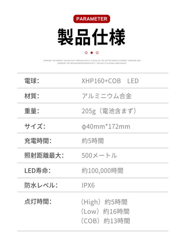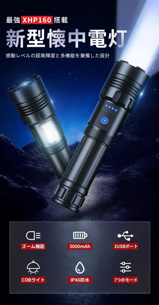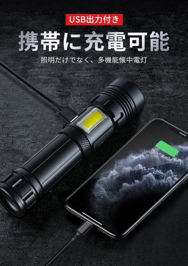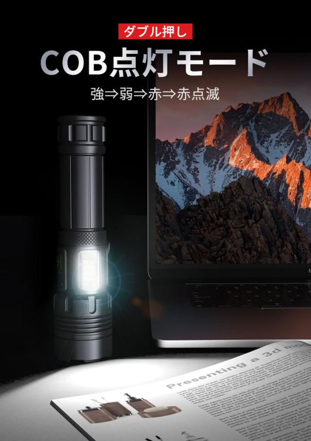 懐中電灯 高輝度 ledライト 防水 充電式 ハンディライト COBライト 防災 登山 夜釣り アウトドア