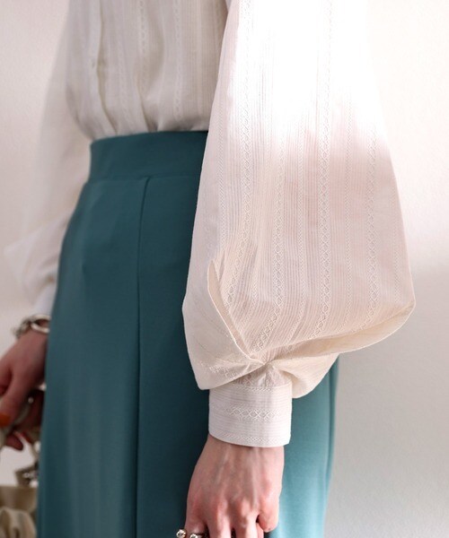 立体的な袖タックと程よい透け感、そして甘さ控えめのレース。