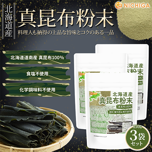 北海道産 真昆布粉末 150g×3袋 【メール便専用品】【送料無料】 真昆布100% 天然調味料 上品な甘味とコク 昆布粉 昆布粉末 真昆布 だし粉 コンブ パウダー こんぶ だし [06] NICHIGA(ニチガ)