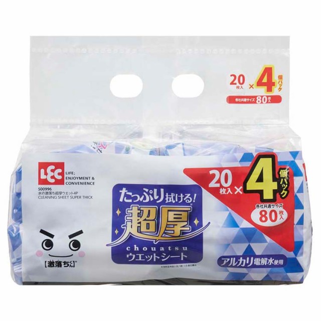 水の激落ちくん 超厚ウェットシート S00996(20枚*4個入)[ハンディーワイパ取り替えシート]