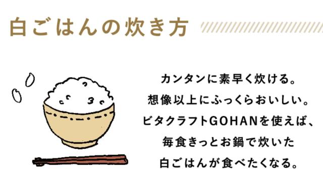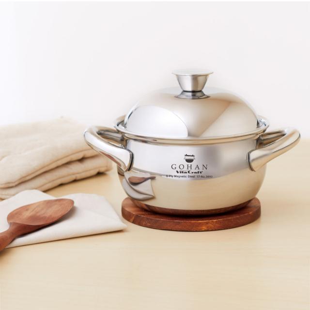 「お鍋で炊いた本当に美味しいご飯を沢山の方に味わっていただきたい」ビタクラフトGOHANは、そんな思いから誕生しました。フタ・本体360度完全5層構造のごはん鍋は熱まわりがよく、お米がふっくらもっちり、一粒一粒ツヤのある理想の仕上がりになります。風味を逃さず炊き上げて、一口食べればご飯の甘みが広がります。ビタクラフトGOHANで、お米本来の美味しさを実感してください。