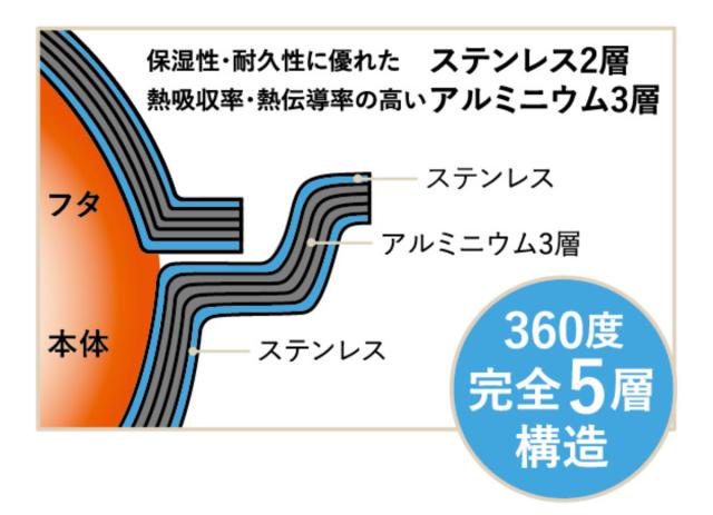 ●360度完全5層構造で、お米一粒一粒ツヤのある理想の仕上がりになります。