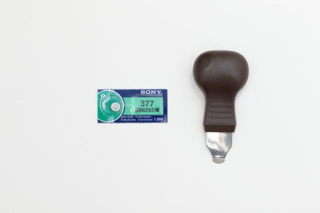 時計の裏蓋を開ける工具 と電池 型番:SR626SW(377)のセットです。