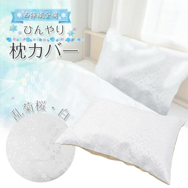 枕カバー ひんやり 春夏 43×63cm 麻の葉 ベージュ 西陣織 金襴 洗える ファスナー まくら ピロー カバー ケース 日本製 伝統文様 和柄 寝具 大判 hg