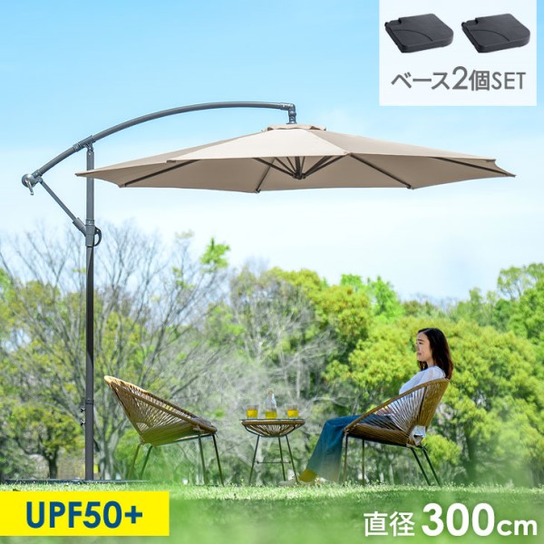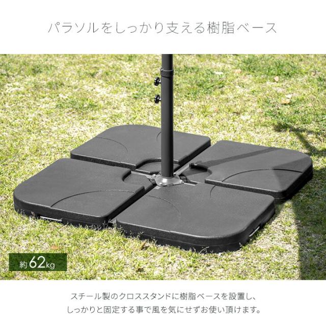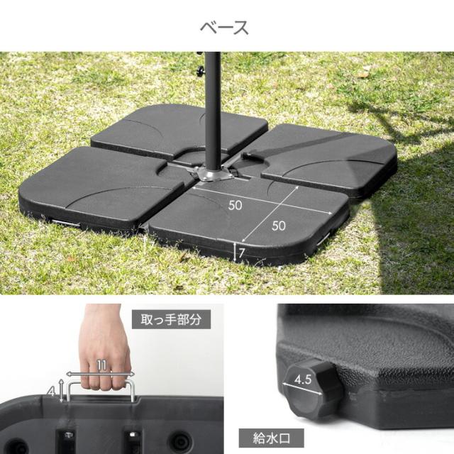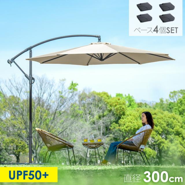 ガーデンパラソル + ベース 4個セット お庭で涼しくリゾート気分 大型 300cm 角度調節 ガーデンパラソルセット 3m パラソル ハンギングパラソル 日よけ 日除け UVカット 折り畳み チルト機能 自立型 ガーデニング おしゃれ