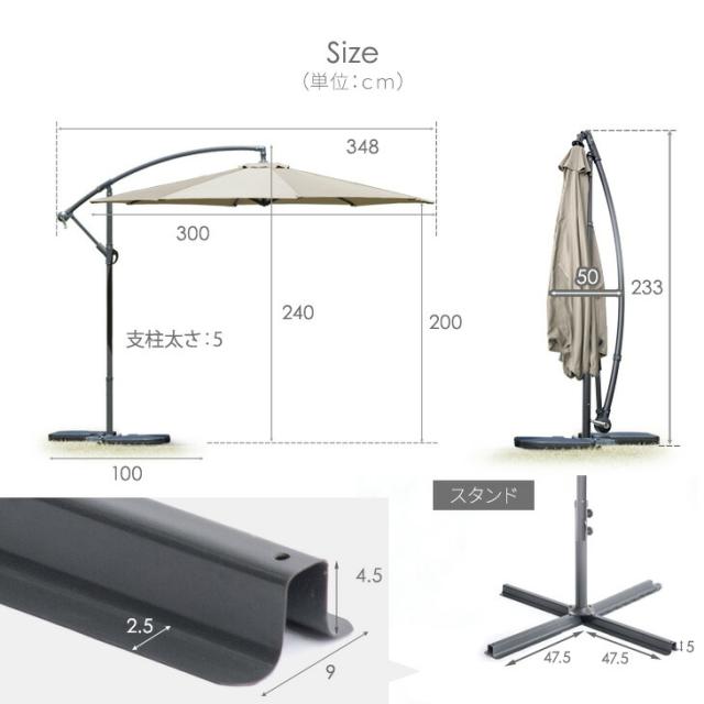 ■サイズ パラソル:幅348×奥行300×高さ240cm