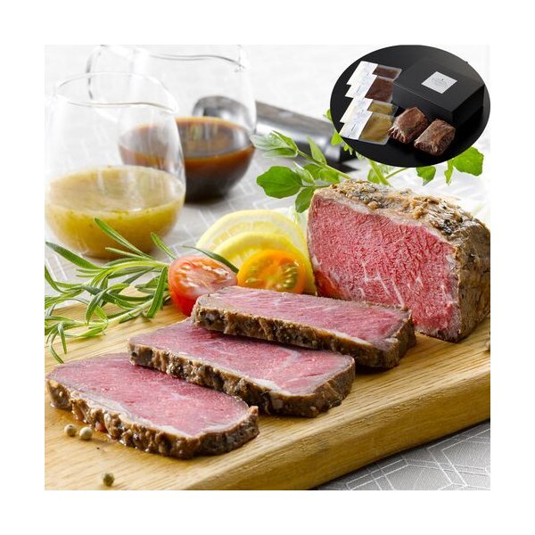■規格:ローストビーフ330g×2、グレイビーソース(たまり醤油入り)50g×2、香草ソース(バジル&ソルト)50g×2