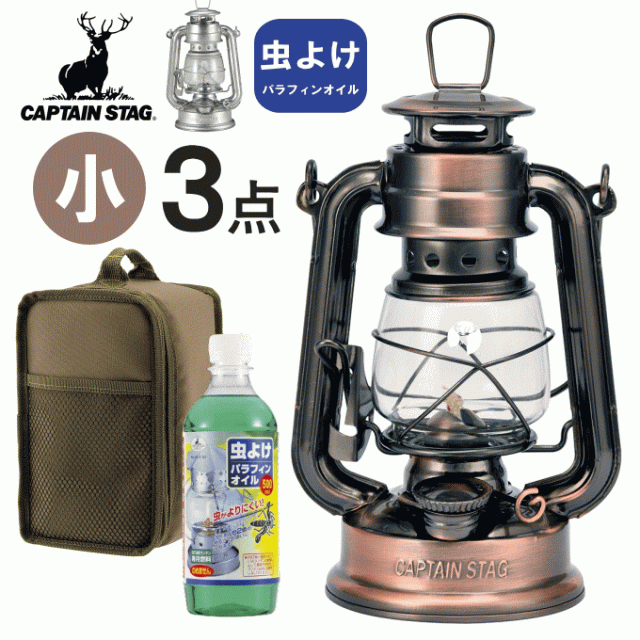 オイルランタン<小> 3点 セット(虫よけパラフィンオイル) オイルランタン ランタン ライト 小型 パラフィンオイル ランタンケース アンティーク コンパクト ソロ キャプテンスタッグ キャンプ アウトドア