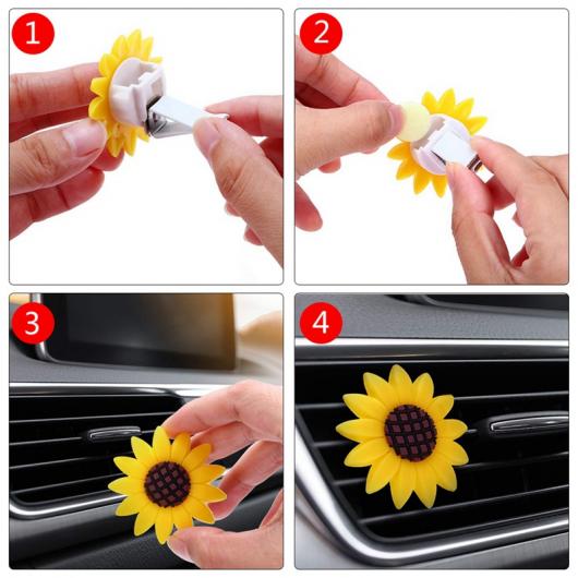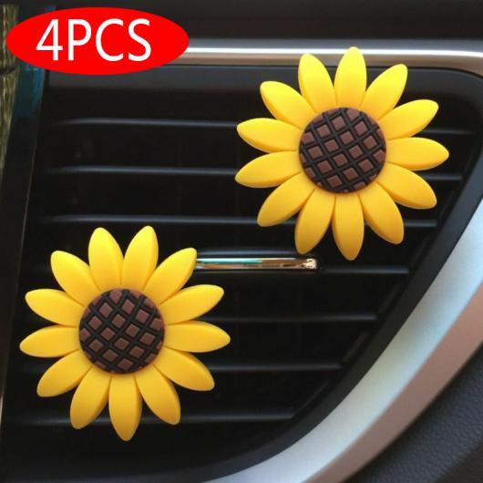 4ピース ひまわり アクセサリー エア フレッシュナー ひまわり 通気口 クリップ 通気口 デコレーション 香水 適用: イエロー AL-OO-3973 AL