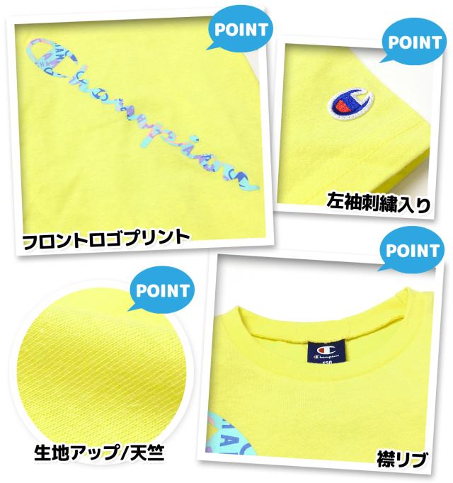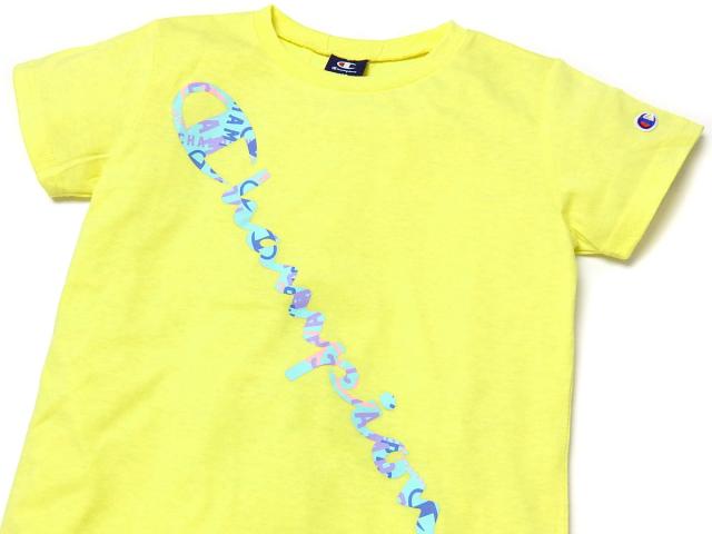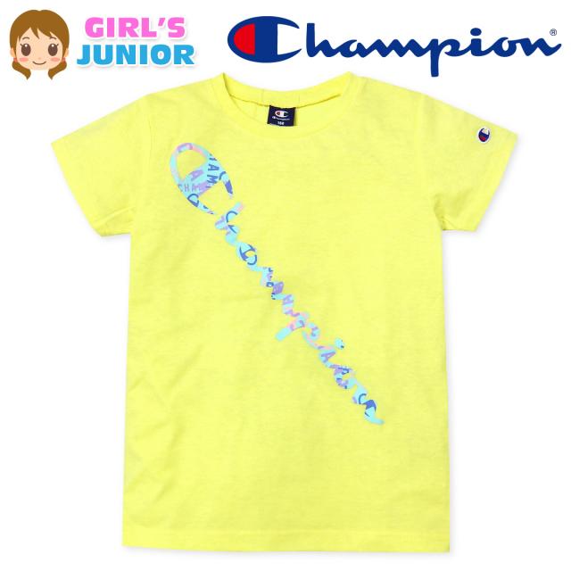 【送料無料】女児 ジュニア 天竺 半袖 Tシャツ Champion/チャンピオン カラフルロゴ 刺繍 綿混 td-0440a-ye【メール便対応】