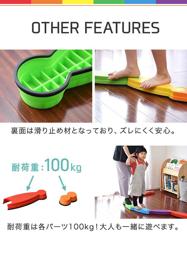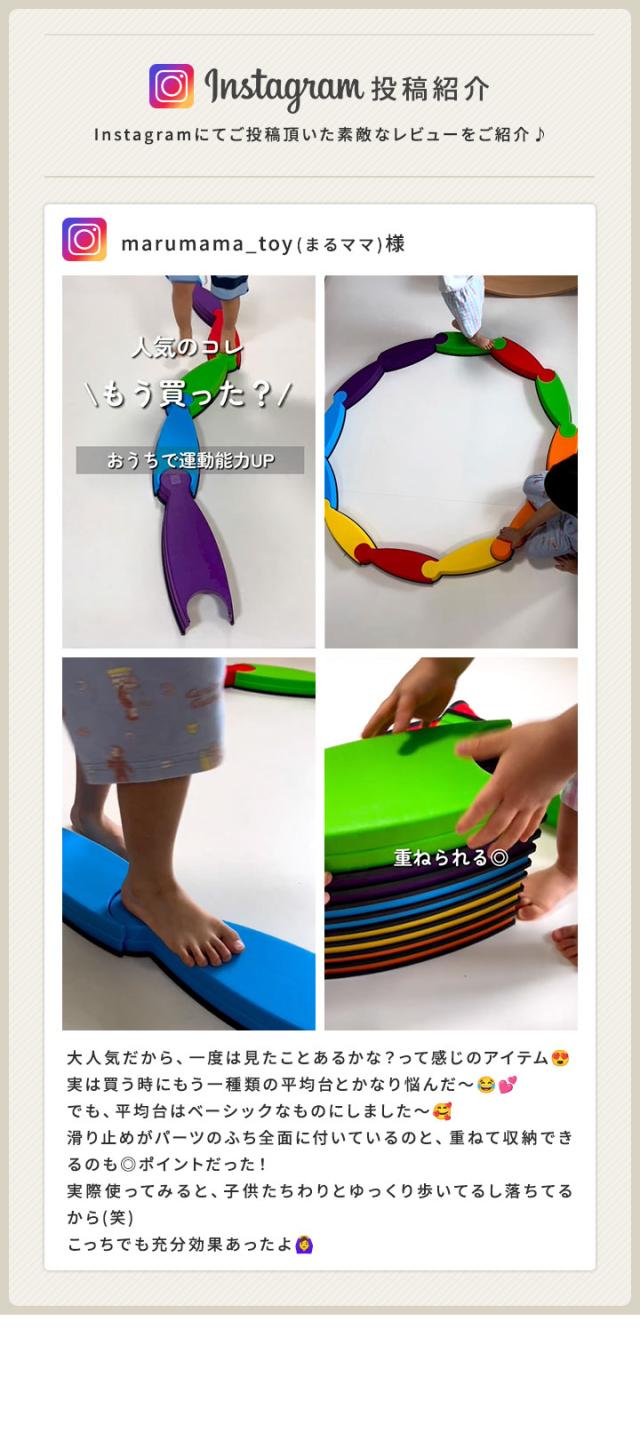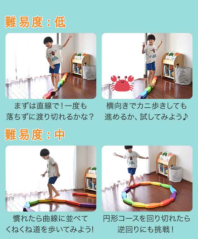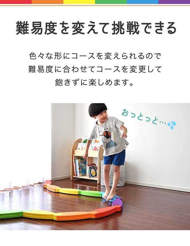 - 子どもの誕生日プレゼントに買いました。2歳児ですが、平均台を自分でつなげて楽しく遊んでます。大人も楽しめるということで、イベントごとの時のゲーム遊びにも使って遊びたいと思います。滑り止めもしっかりつい...