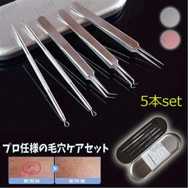 br27#5本set毛穴ケア いちご鼻 角栓取り 角栓除去 ニキビ針 にきび針 黒ずみ取り ニキビ取り 専用キット ケース付き 角栓プッシャー