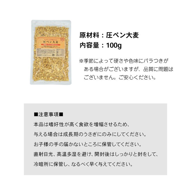 SMILE PET CLUB 無農薬 国産 圧ペン大麦 100g うさぎ