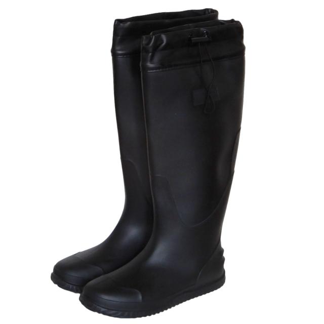 水滴を入りにくくするために、履き口を絞る仕様にしております。さらに、絞り紐はゴム製のため、ブーツを丸めて固定するのに便利です。