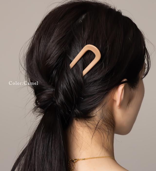 かんざし 簪 U字 ヘアアクセサリー ヘアアクセ マット 無地 レディース まとめ髪 ヘアアレンジ 浴衣 着物 和装 フォーマル 結婚式 パーティー ベージュ ブラック アッシュ キャメル ネイビー デイリー シンプル