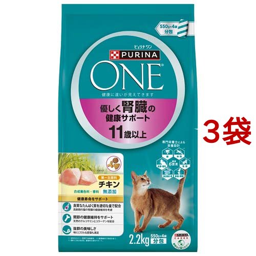 ピュリナワン キャット ドライ 優しく腎臓の健康サポート 11歳以上 チキン(2.2kg*3袋セット)[キャットフード(ドライフード)]