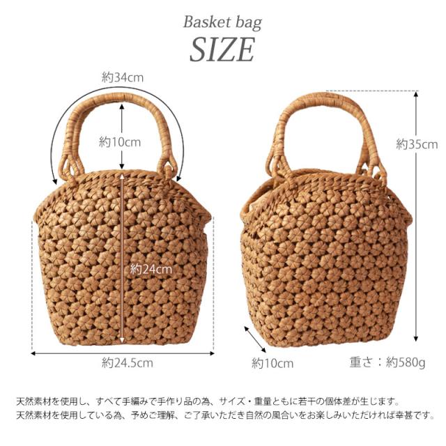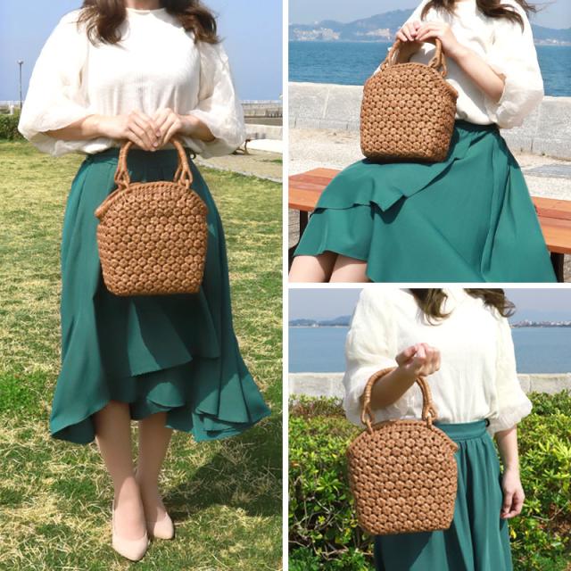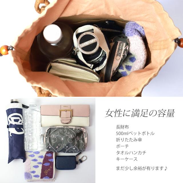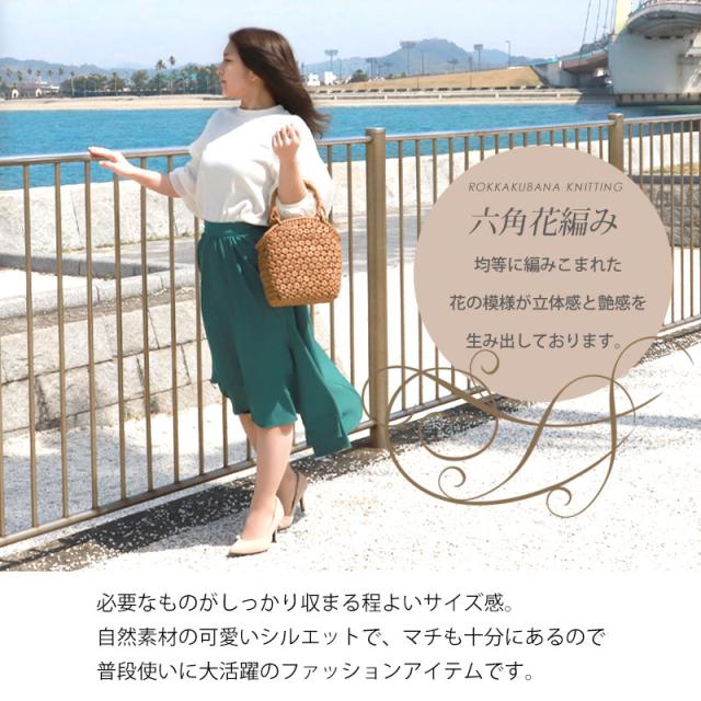 必要なものがしっかり収まる程よいサイズ感。自然素材の可愛いシルエットで、マチも十分にあるので普段使いに大活躍のファッションアイテムです。