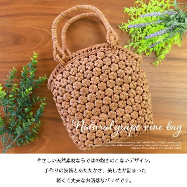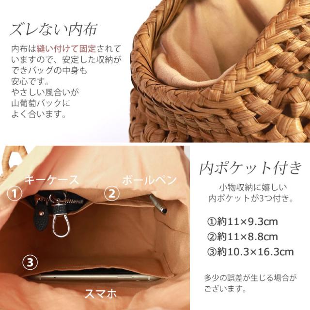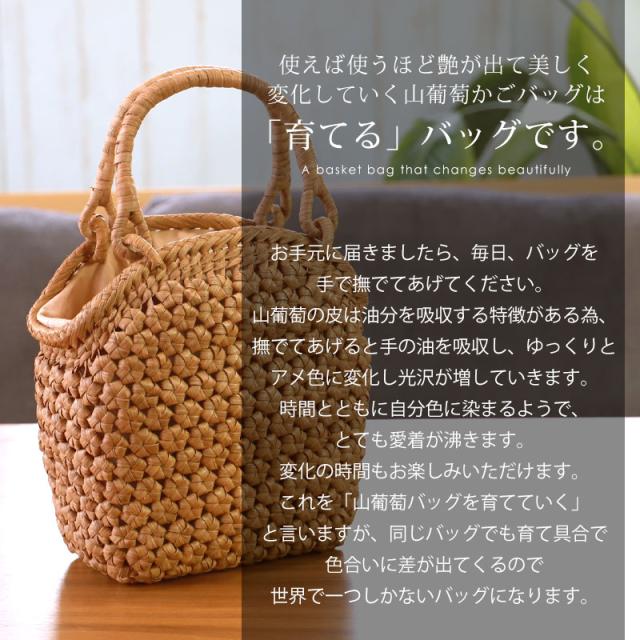 山葡萄 かごバッグ 1年保証付き 内布付き 山ぶどう やまぶどう 蔓 天然素材 カゴバッグ 籠バッグ バスケット レディース 大人 おしゃれ 綺麗 六角花編み リングハンドル 手提げ ハンドメイド 手作り 母の日
