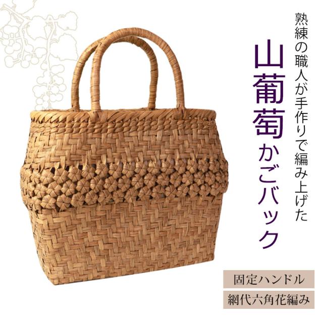 山葡萄 かごバッグ 1年保証付き 内布付き 山ぶどう やまぶどう 蔓 天然素材 カゴバッグ 籠バッグ バスケット レディース 大人 おしゃれ 綺麗 網代六角花編み 固定ハンドル B5 ハンドメイド 手作り 母の日 k_name