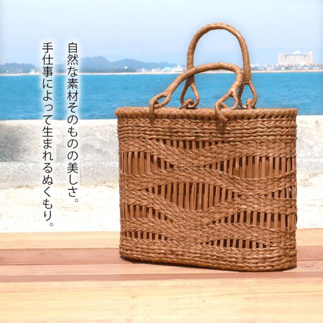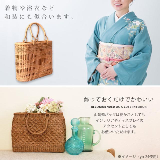 季節を問わず通年使え、着物にもカジュアルにも似合います。山葡萄 かごバッグ 1年保証付き 内布付き 山ぶどう やまぶどう 蔓 天然素材 カゴバッグ 籠バッグ バスケット レディース 大人 おしゃれ 綺麗 透かし波編み リングハンドル 手提げ B5 ハンドメイド 母の日