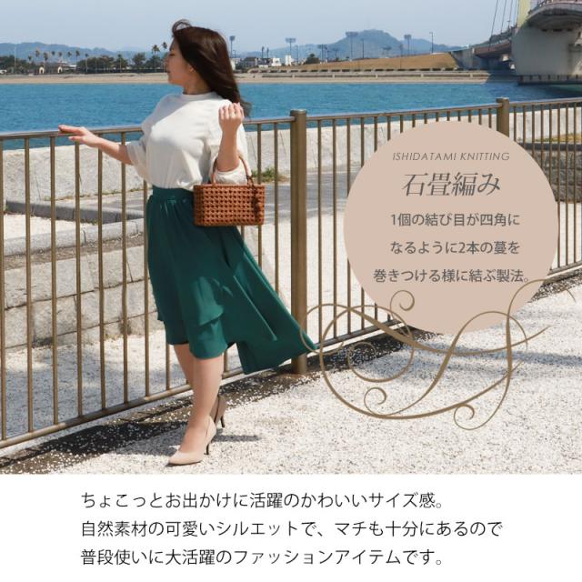 必要なものがしっかり収まる程よいサイズ感。自然素材の可愛いシルエットで、マチも十分にあるので普段使いに大活躍のファッションアイテムです。