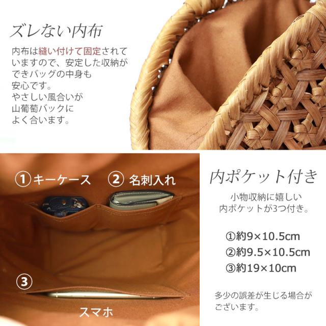 | 素材 | 鞄本体:天然山葡萄蔓 内布:綿100%(柿渋染め) |
