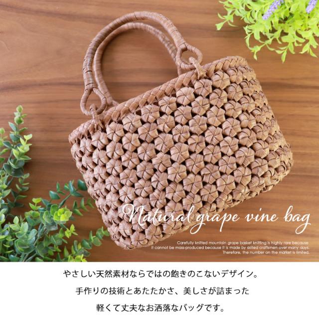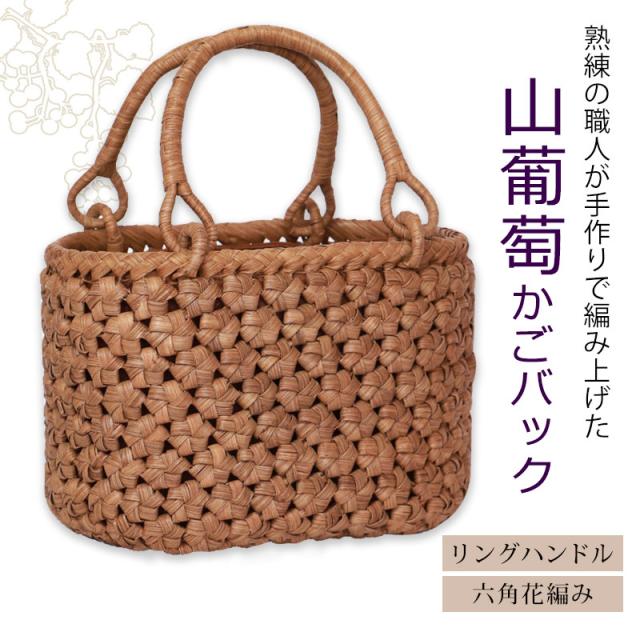 山葡萄 かごバッグ 1年保証付き 内布付き 山ぶどう やまぶどう 蔓 天然素材 カゴバッグ 籠バッグ バスケット レディース 大人 おしゃれ 綺麗 六角花編み リングハンドル 手提げ ハンドメイド 手作り 母の日 k_name
