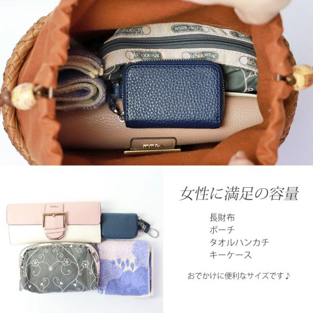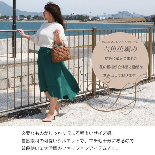 | 仕様 | 六角花編み リングハンドル 柿渋染め内布(巾着 内ポケット付き) 取り扱い説明書 保証書付き |