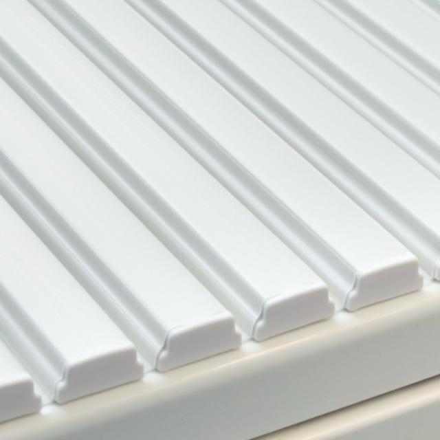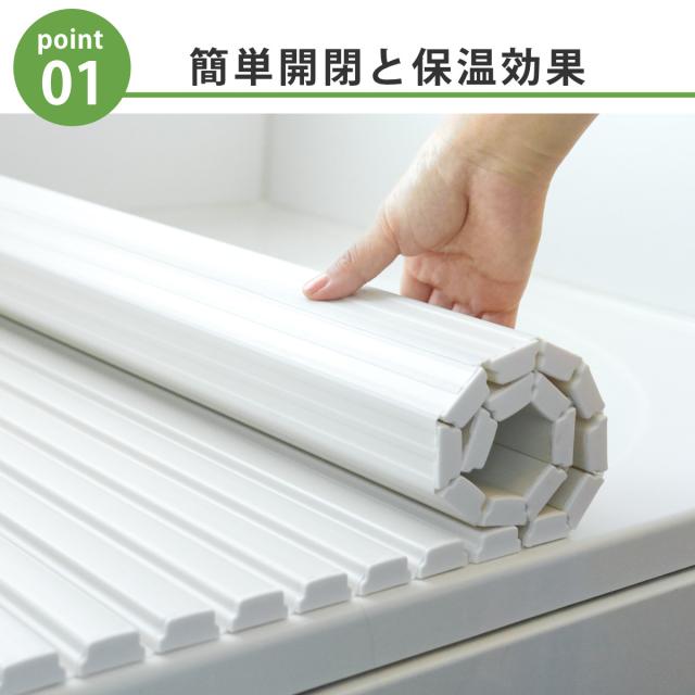 巻きながら開閉するシャッタータイプの風呂ふたです。巻き始めから最後まで軽い力でくるくると巻けるため、お子様や高齢の方でも簡単です。入浴の際に全て開けず半開きにすれば、お湯が冷めにくく保温効果が期待できます。
