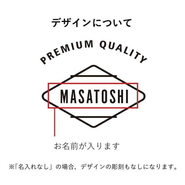 | 名入れ | ■お名前(ローマ字のみ) ※文字数は10文字までとさせていただきます。 ※「名入れしない」をお選びの場合、デザインの彫刻もなしになります。 |