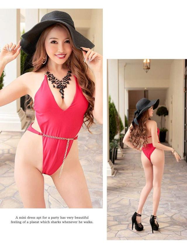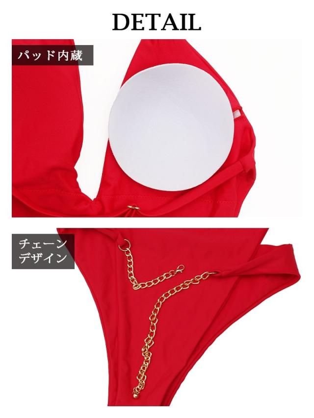 ☆セクシーVラインのハイレグデザインは男ウケ抜群のえちえちモノキニはシンプルカラーにウエストマークのゴールドチェーンで高見えするレディース水着です。