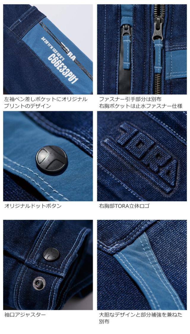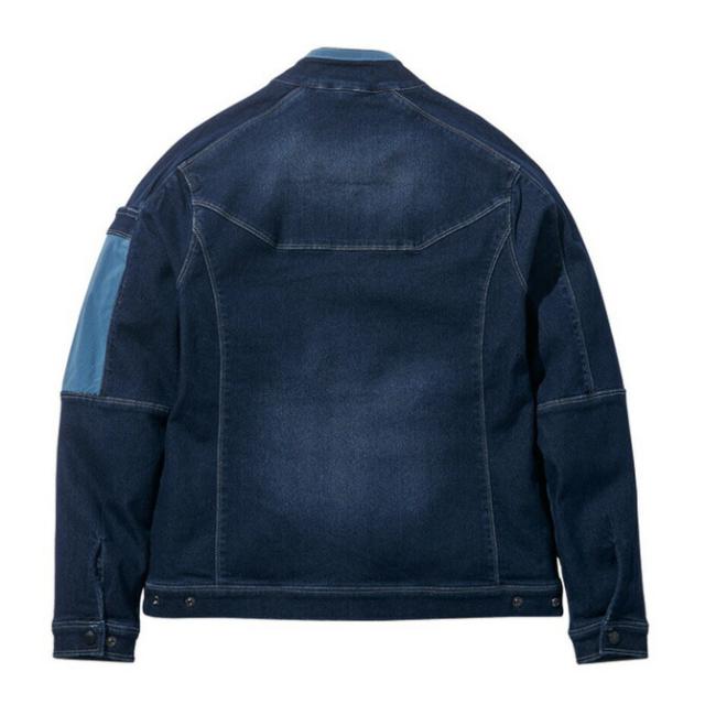 | 寅壱の伸縮率抜群の横伸びストレッチで動きやすいデニムワークジャケットです。 遮熱機能を取り入れ、裏面点接触の肌触りが良いので、夏場に大活躍してくれます。 胸ポケットは、マチ付きの大容量で、落下防止の止水ファスナーを装備し、後裾にはドットのアンダーパーツのみ配置して便利なアジャスター付きです。 大胆な配色別布の組み合わせは斬新で目を引くポイントで、デザインの特徴と共に部分補強も兼ねています。 | |||