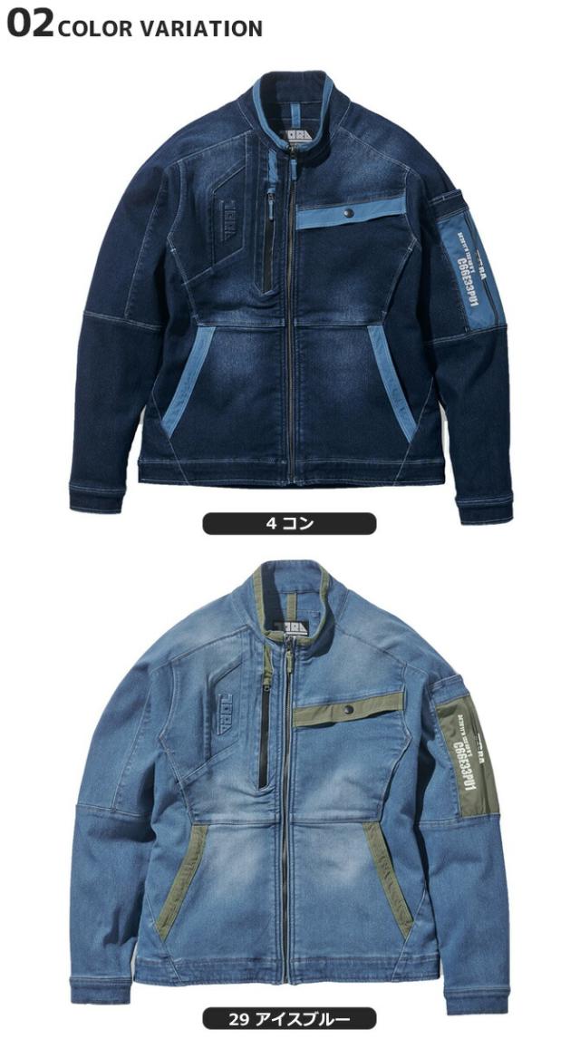 寅壱 デニムワークジャケット 8860-124 メンズ 春夏 ストレッチ 遮熱 吸汗 長袖ブルゾン 作業服 作業着