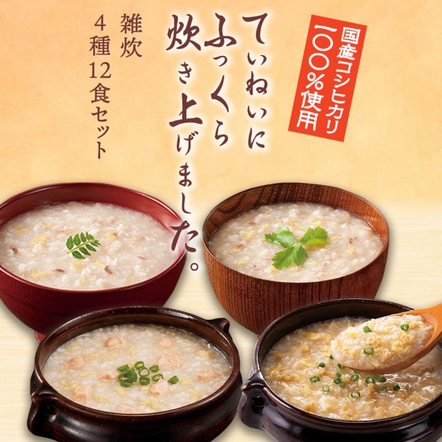| 内容量 | ■ 具材と旨味にこだわった 雑炊 かに雑炊 250g たい雑炊 250g ほたて雑炊 250g とり雑炊 250g 4種 各3食 合計12食 |