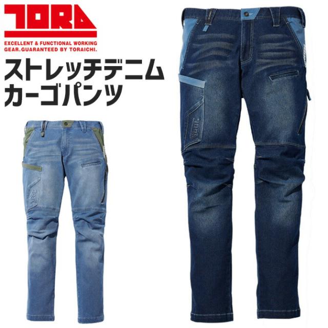 寅壱の伸縮率抜群の横伸びストレッチで動きやすいデニムカーゴパンツです。