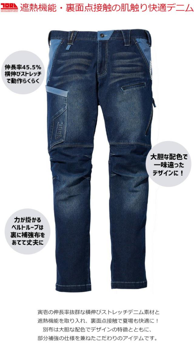 寅壱 デニムカーゴパンツ 8860-219 ストレッチ メンズ 春夏 ストレッチ 遮熱 吸汗 ワーク 作業服 作業着