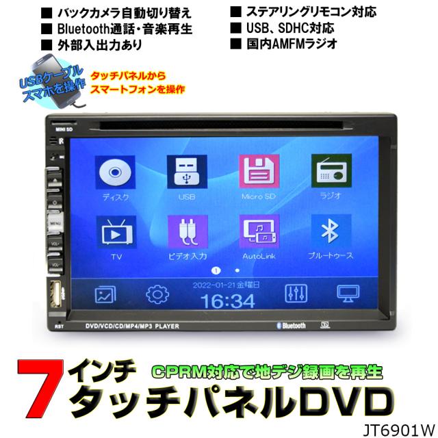 地デジCPRM対応 2DIN7インチタッチパネル DVDプレーヤースマホ連動 ラジオ USB SD 動画 音楽再生 外部入出力あり D54