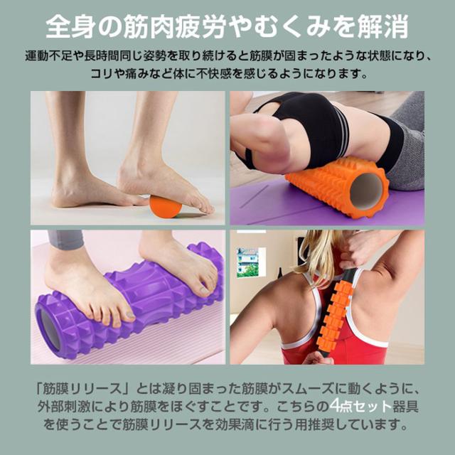 フォームローラー マッサージローラー 4点セットヨガポール ダイエット トリガーポイント マッサージ ローラー 筋膜 ローラー 筋膜リリース ヨガローラー スティック マッサージ ボール トレーニング 肩こり