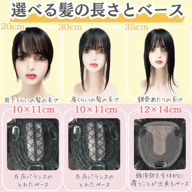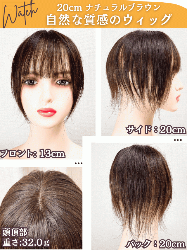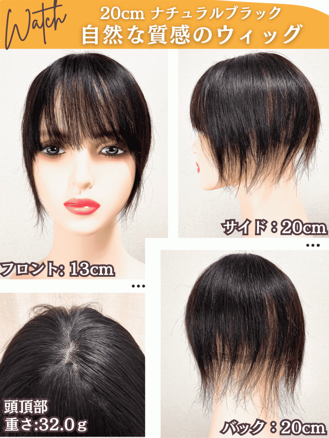 | サイズ | フロント13cm / トップ 23cm / バック 20cm / サイド 20cm / 重さ:約 32.0g |