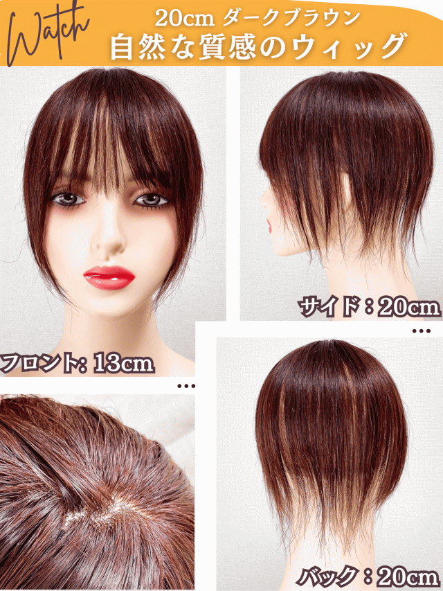 部分ウィッグ かつら ヘアピース 女性 レディース 人毛100% ウィッグ 医療用 つむじ 頭頂部 ポイントピース 薄毛 脱毛 前髪ウィッグ 人毛 つむじ付き トップピース 白髪カバー トップウィッグ 人毛ウィッグ トップウィッグ ヘアーピース 20cm Luce brillare ルスブリラーレ