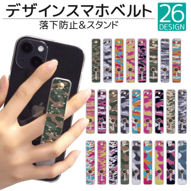 指を通してしっかりホールドできる落下防止スマホバンド(スマホベルト)。便利なバンドはスマホスタンドとしても使えます。自分の好きなデザインで自由にコーディネート♪