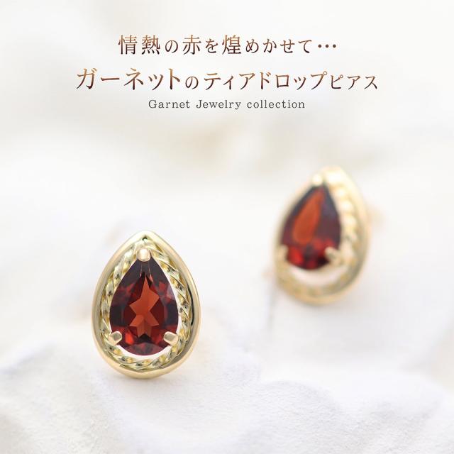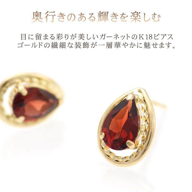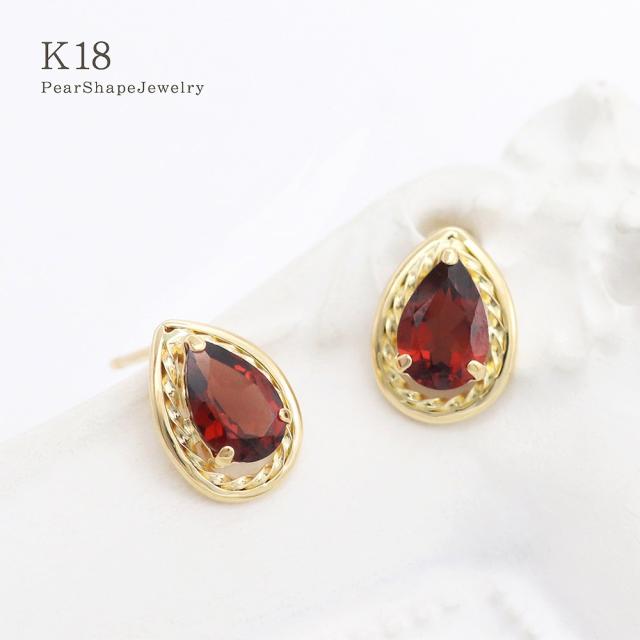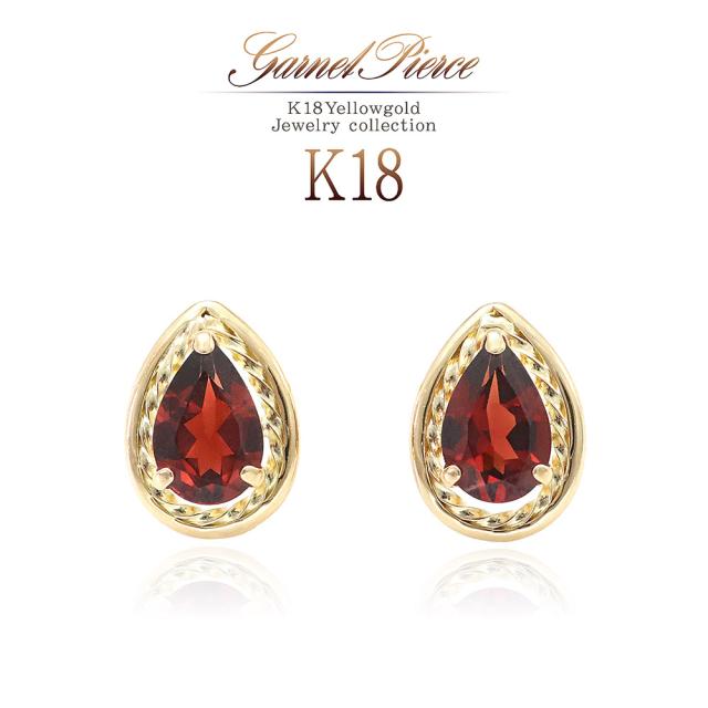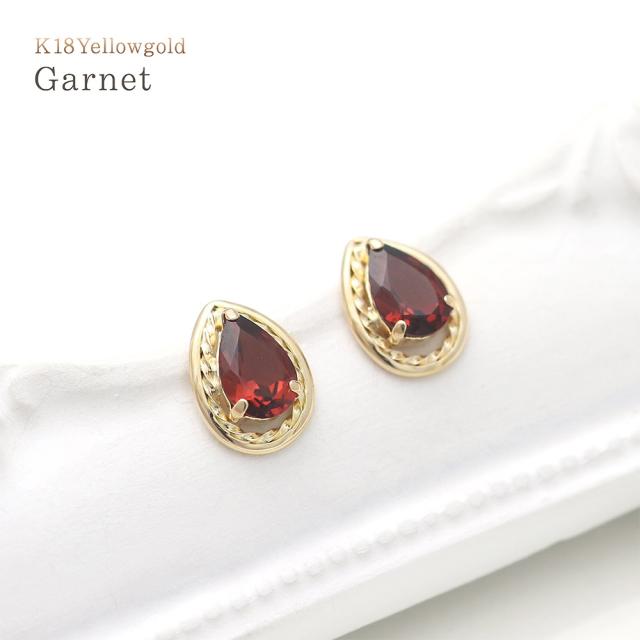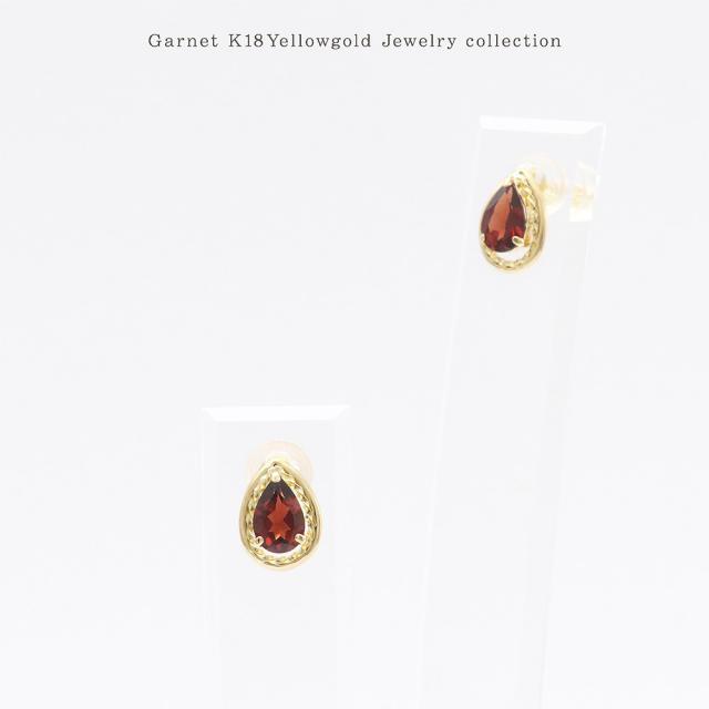ピアス 18金 ガーネット レディース 18K イエローゴールド K18 宝石 天然石 ジュエリー 1月 誕生石 ガーネットピアス プレゼント 記念日 誕生日 ギフト お祝い おしゃれ 雫形 涙形 ティアドロップ 雫型 涙型 赤色 レッド 女性 本物 30代 40代 ホワイトデー お返し