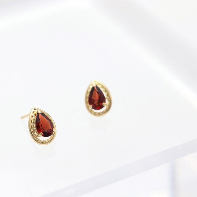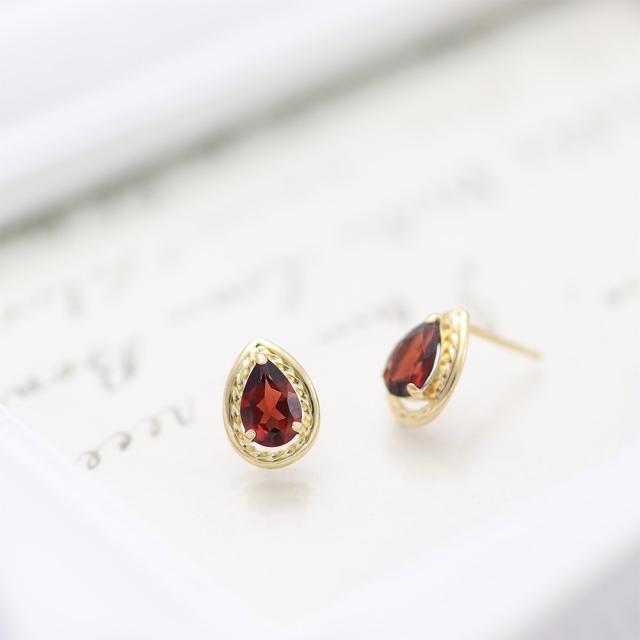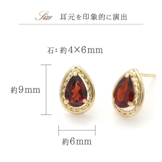 | 地金・素材 | ・ガーネット ペアシェイプカット ・地金:K18YG(18金イエローゴールド) ・ダブルロック キャッチ ※刻印箇所等は画像と異なる場合がございます。 |