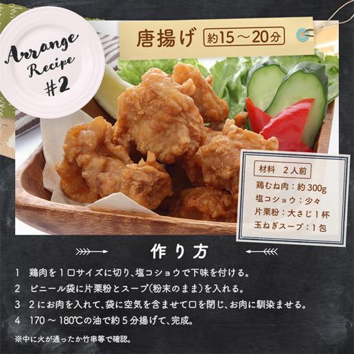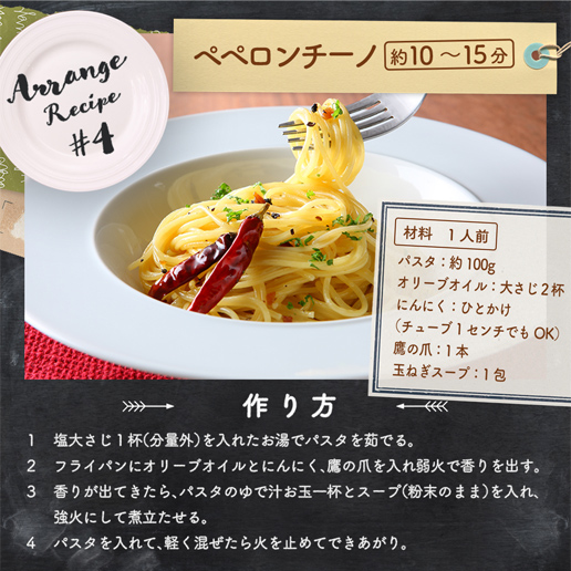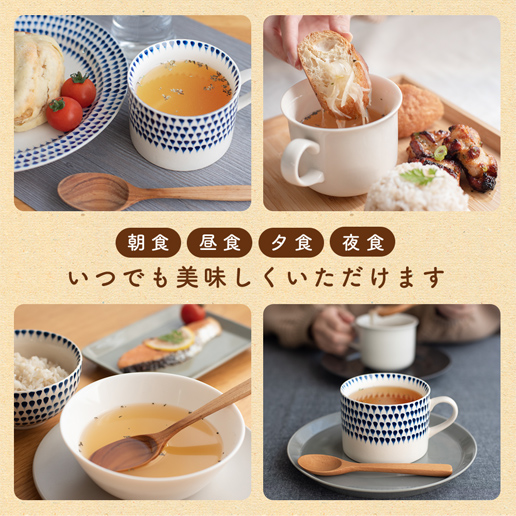 - こちらのスープは、味がしっかりしているので、具材を加えても美味しくいただけます。